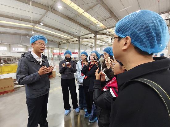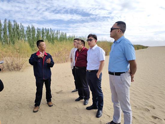 格尔木农垦(集团)有限公司格尔木特色生物产业园副主任邢亮德向大家介绍枸杞产业发展(马祥苍 摄)
