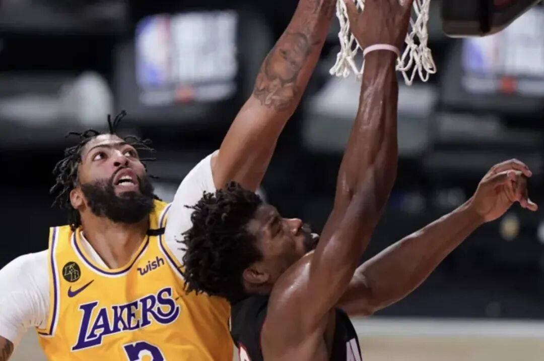 2020年总决赛第一战,湖人锋线公分的勒布朗,官方身高208公分的德怀特·霍华德和戴维斯。
