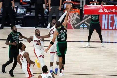 凯尔特人第五场靠丹尼尔·泰斯的15分13篮板3封盖以及多次换防,121比108取胜,追到2比3。但第六场,迈阿密热不等了:双方你来我往纠缠到第四节,热一度落后到91比96。随即阿德巴约接管比赛。全场阿德巴约32分14篮板5助攻,热以125比113取胜,4比2淘汰凯尔特人。