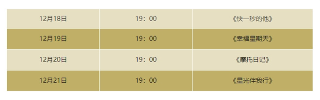 「云端影院」将于每日19:00准时放映多部优秀影片《快一秒的他》《幸福星期天》《摩托日记》《星光伴我行》。